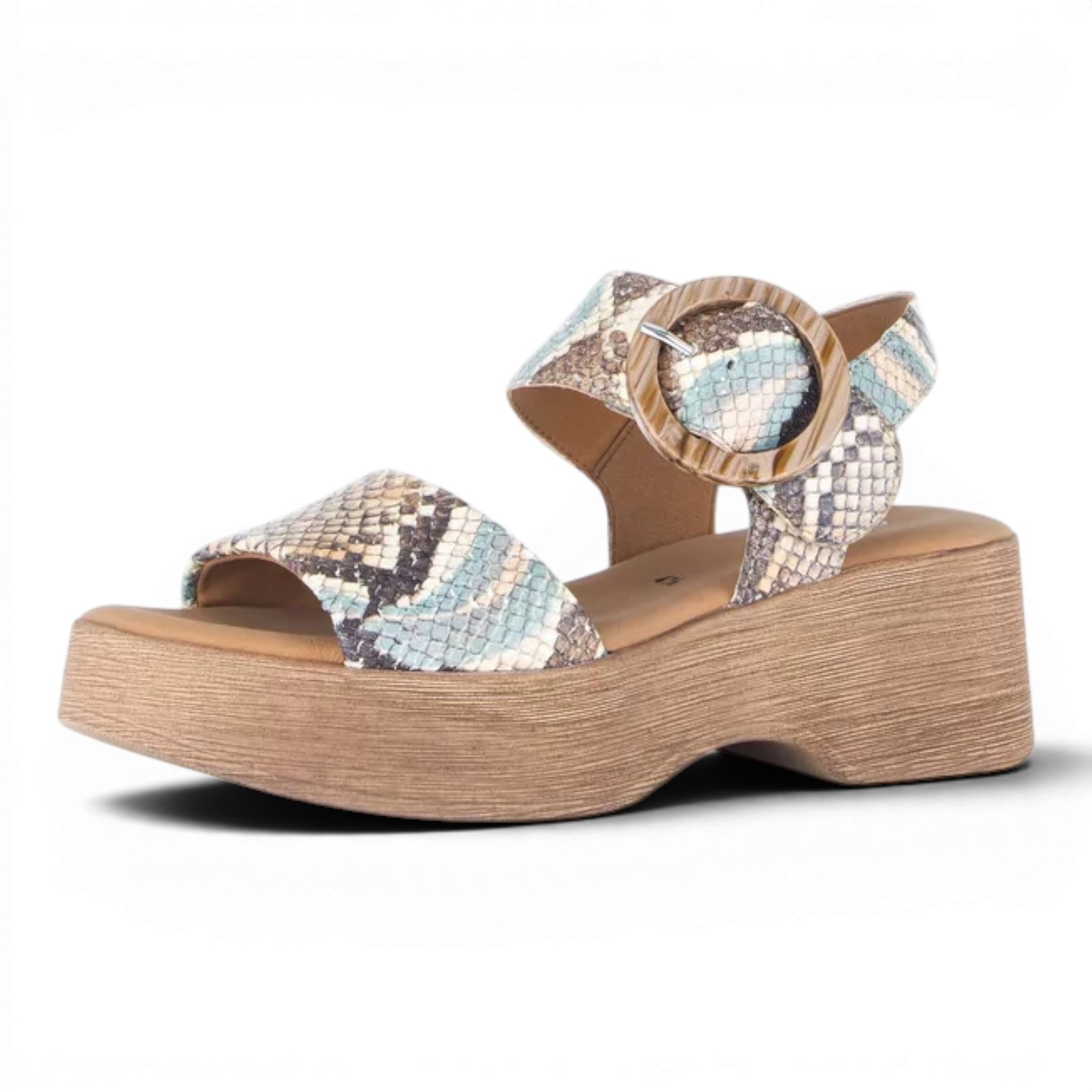 Type : Sandale à talon en imprimé reptile de Gabor