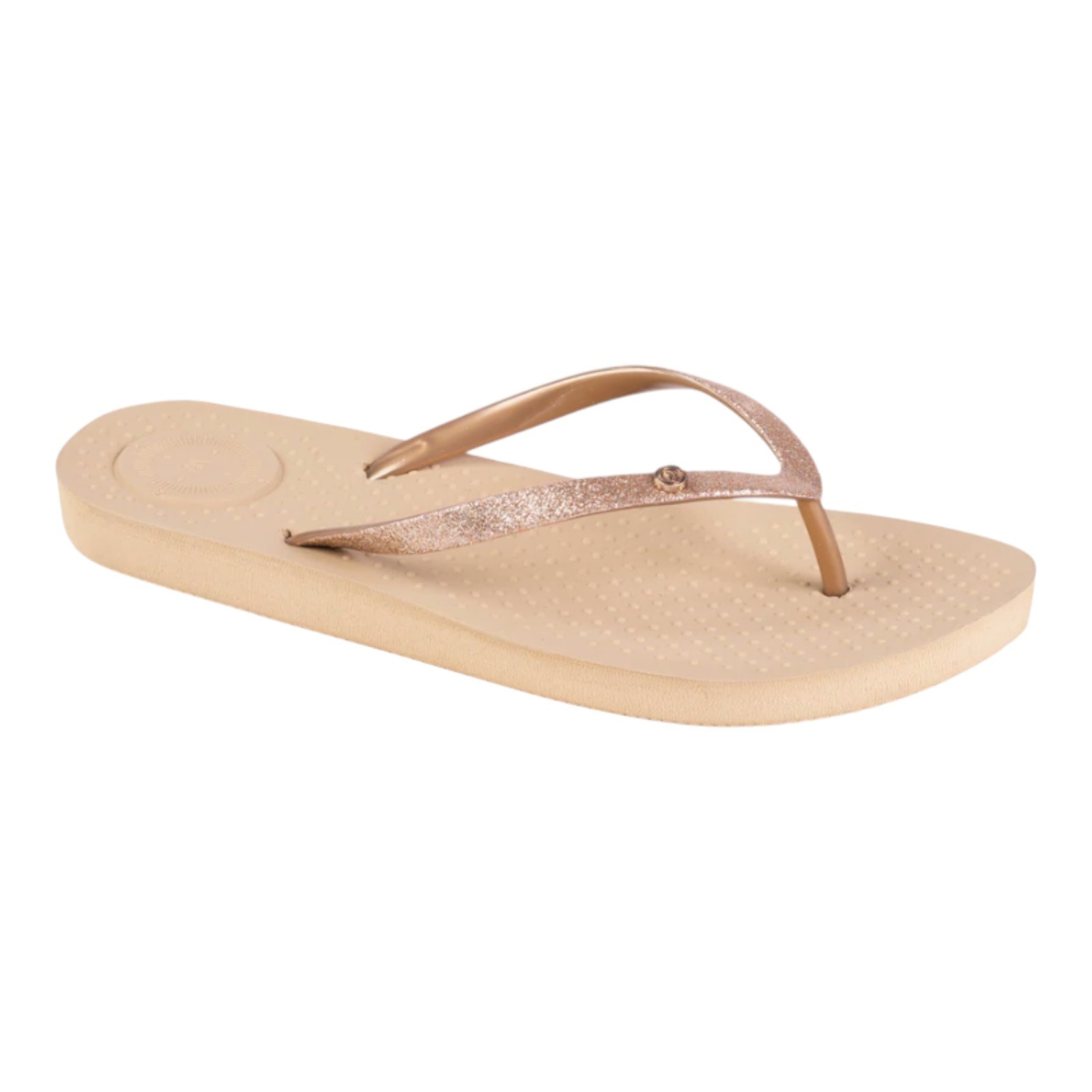 Description du produitType: TongsMatériau :Doublure : SynthétiqueSemelle intérieure : SynthétiqueSemelle extérieure : SynthétiqueFermeture : AucuneSemelle intérieure amovible : NonCouleur : Beige - Paillettes